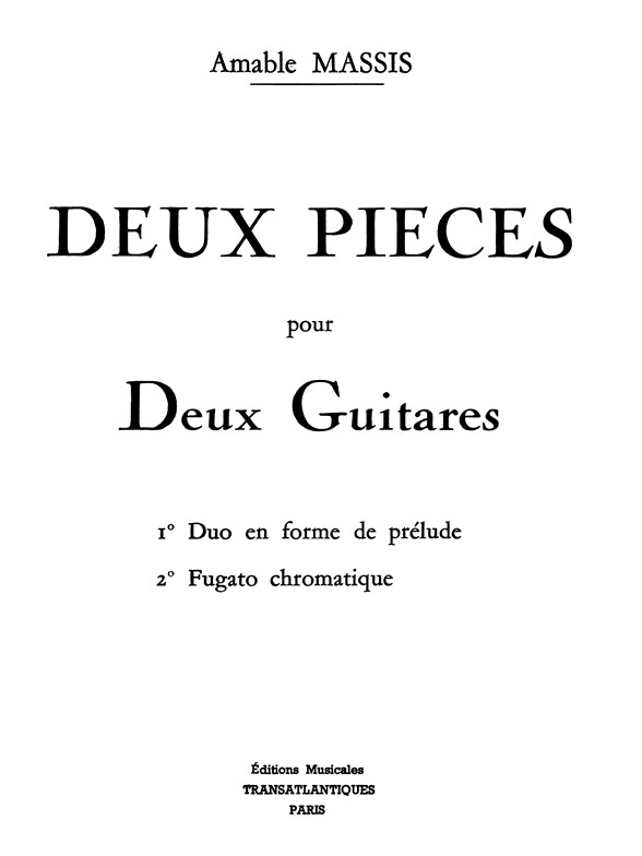 Amable Massis: Deux Pièces Kategori: 784 Forhandlere Lagerstatus Pris Stepnote.dk - 50-75000 in stock DKK 86,00 Besøg