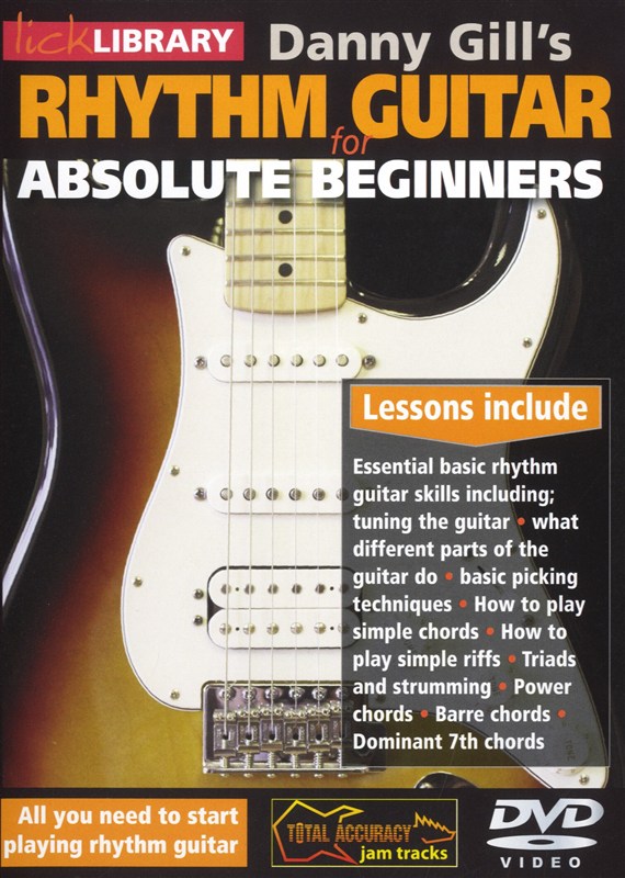 This superb DVD?includes a selection of easy to absorb lessons that are designed to teach the beginner guitarist some of the essential basics of rhythm guitar playing.Over the course of this DVD you will learn some essential rhythm guitar techniques such as simple chords, barre chords and power chords that can be used in any style of guitar playing from jazz to metal.This DVD includes:Tuning the guitarWhat different parts of the guitar dobasic picking techniquesHow to play simple chordsHow to play simple riffsTriads and strummingPower chordsBarre chordsDominant 7th chordsDanny Gill is a former pupil of Joe Satriani, and co-author of the Musicians Institute Rock Lead Guitar series. His songs have appeared on numerous TV shows including 'The Osbournes' as well as motion picture soundtracks such as 'Insomnia' and 'Under Siege'.