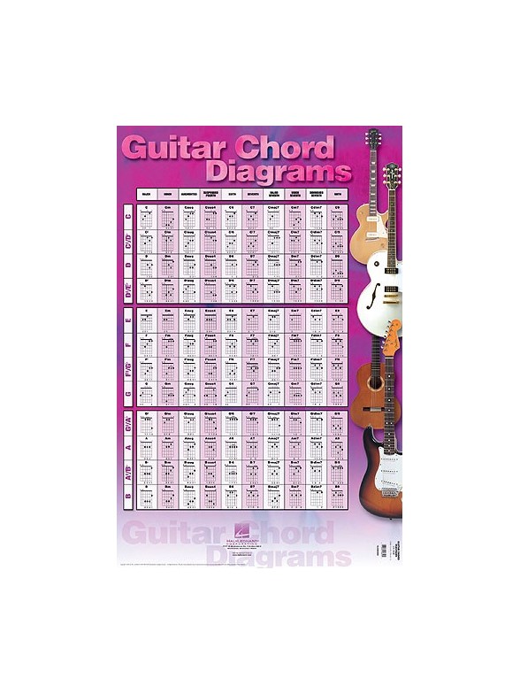 22 inch. x 34 inch. Poster. This poster is a must for students and teaching studios! Features dozens of the most commonly used chord diagrams.