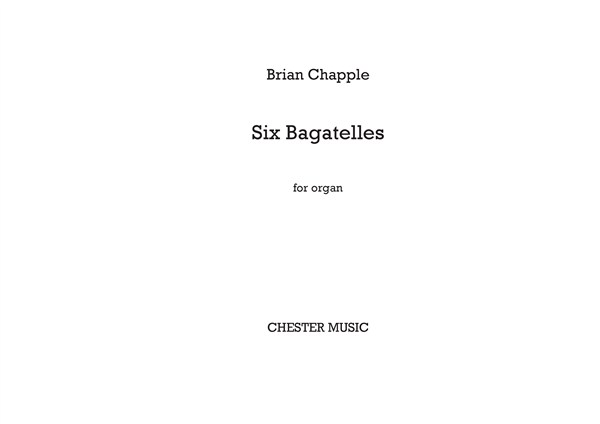 The first performance of Six Bagatelles was given by Margaret Phillips in St Michael?s Church, Lyme Regis, on 18 November 2011.Six Bagatelles are transcriptions for organ of six of the Bagatelles diverses originally written for solo piano. These are published by Chester Music (order no. CH74371) and have been recorded by Caroline Clemmow on ?Burlesque? - Piano Music by Brian Chapple (divineart dda25056)."I am very grateful to Margaret Phillips for her helpful comments and practical suggestions in the preparation of these pieces for performance." - Brian Chapple"This engaging set was originally written for solo piano and transcribed for organ for Margaret Phillips, who first performed them in 2011. The transcriptions are most successful: idiomatic and allowing plenty of scope for colourful registrations. Harmonically the music is dissonant, yet accessible; themes are engaging and well developed. The fifth is the most extended ? an inventive, dancing scherzo coupling sliding chromaticism with a fierce inner rhythmic drive. This would make an excellent set for the adventurous recitalist but could equally be played individually in a liturgical setting." - Sunday by Sunday