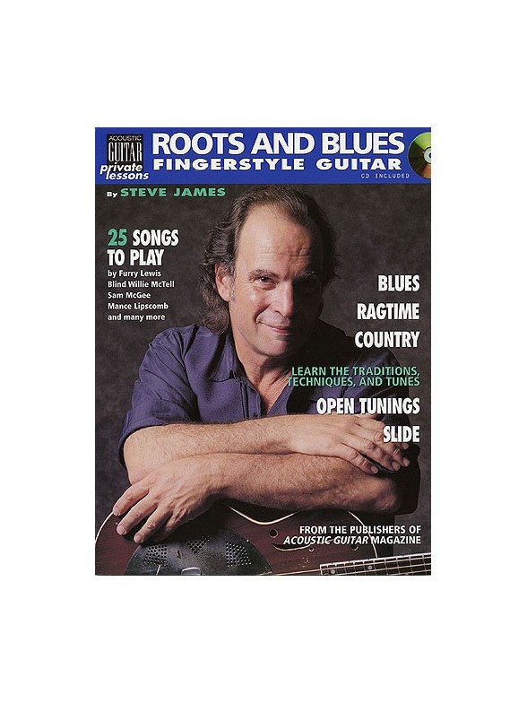 Acoustic Guitar Private Lessons. Steve James presents a treasure trove of traditional American guitar styles in this unique book/CD pack. Guitarists will learn fingerpicking and slide techniques not through dry exercises but by playing 25 songs from James' own repertoire and from such masters as Furry Lewis, Blind Willie McTell, Sam McGee, and Mance Lipscomb. Drawing on his extensive research and first-hand experience with these guitar pioneers, James tells the stories behind the songs, too. Features authentic arrangements in notes & TAB, vocal melodies and lyrics, historic photos, and more. Songs: Take Me Back · Sugar Babe · Milwaukee Blues · Sebastopol· John Henry · more!
