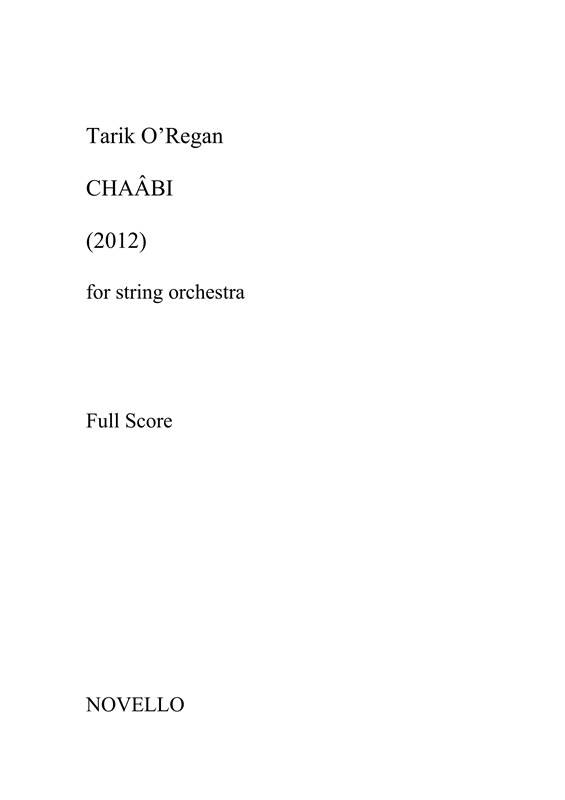 Chaâbi by Tarik O'Regan was commissioned by the Australian Chamber Orchestra. First performance 10 October 2012 at Portland Memorial Hall, St. Helens, Tasmania by ACO2, directed by Helena Rathbone.String orchestra (minimum players: 5.5.3.3.1)
