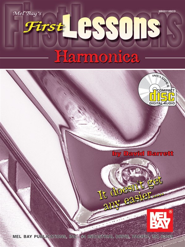 First Lessons Harmonica is an exciting set-by-step instruction course for the ten-hole diatonic harmonica. Subjects covered are: reading music notation; rhythm training; train patterns; folk tunes; blues; bending; vibrato; tongue blocking single notes and octaves; and instruction on all three common harmonica positions (1st, 2nd and 3rd). Book is accompanied by CD recording of all examples played by author David Barrett along with background music.