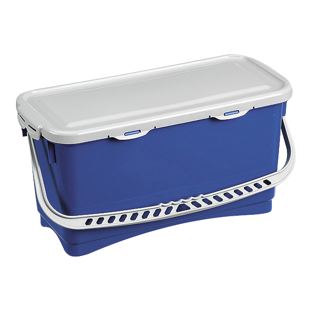 Plast spand til imprægnering af 40 ca. mopper. Boksen holder mopperne fugtige/våde i op til 12 timer før brug. 20 liter spand Længde: 57 cm Bredde: 26 cm Højde: 27 cm Vægt: 1,40 kg