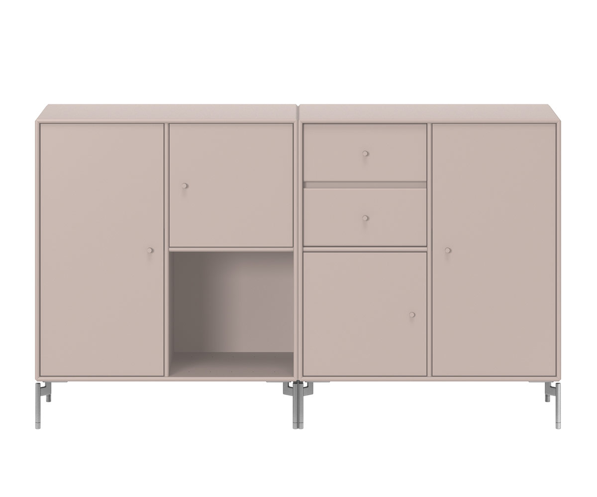 Design:Peter J. Lassen Beskrivelse:Montana reolsystem er designet i 1982 af Peter J. Lassen. Hans filosofi var, at elementerne skal være praktiske, smukke samt være i stand til at blive kombineret i det uendelige. I 2015 introducerede de Montana Selection, der er en møbelserie, der inspirerer og eksemplificerer Montana systemets mange muligheder.Couple er en spændende skænk, hvor du har mulighed for både opbevaring og diverse nipsting. Couple tilbydes i seks forskellige farver med levering indenfor 8-10 hverdage. Farverne er: Anthracite, New White, Nordic, Monarch, Mushroom og Vanilla. Modulet fås i alle Montanas 42 farver. Ring for mere information. Materiale:Lakeret MDF (se farver)Lakeret stål