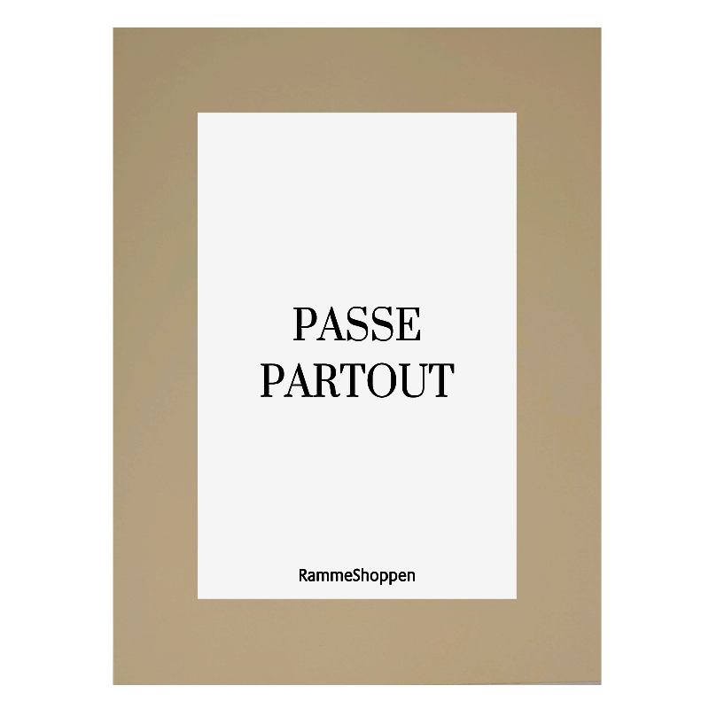 HVAD ER EN PASSEPARTOUT? Passepartout er et specialudskåret stykke syrefrit pap, der har 2 primære formål. Dels giver det en visuel omkransning af motivet og dels giver det et tyndt mellemrum mellem frontglasset og motivet. Især i rammer med alm. glas er sidstnævnte vigtigt, da ændring i luftfugtigheden ellers kan give skader på motivet pga. kondensering. Dette ses typisk som bølger langs motivets kant eller "koronaer" - cirkler inde på midten af motivet. Kun fototryk, der er beregnet til at kunne sidde direkte bag glas, bør udsættes for det. Alle andre typer tryk bør have passepartout imellem eller monteres uden frontglas (f.eks. opklæbet på bagplade). Alle invendige kanter skæres i 45 graders vinkel. Alle vore passepartout er skåret i 45° vinkel i de indre udskæringer, så man får en elegant overgang til motivet samt minimale skygger fra passepartout'en ind på selve motivet. Fototrykket, som man ønsker at sætte bag passepartout bør altid være 1 cm større på begge leder, så man har ca 5mm overlap bag passepartouten på alle kanter til at give en let og simpel fastgørelse af motivet med tape el. lign. ANBEFALEDE BILLEDMÅL Det anbefalede billedmål er minimums motivstørrelse, for lettest mulige montering. Bemærk, at det motiv, som man vil sætte i passepartout'en, sagtens kan være større end anbefalede motivmål. Man bør blot sikre sig, at vitale elementer i motivet ikke skjules. Det kan gøres ved at måle hulmålet, som bliver den synlige del af motivet. YDRE MÅL / RAMMEMÅL Passepartout'ens ydre mål, der skal passe ind i den tilhørende ramme. Hos os (og de fleste andre steder) svarer det til rammens "rammemål", dvs. målet på det indhold, som man kan sætte i rammen. Tip: Det er næsten altid det samme som frontglassets mål. Det maximale ydremål for dette passepartout er 81 x 101 cm. HULMÅL Det er passepartoutens huludskæring i midtens mål og den del af motivet, som man vil kunne se. Til hulmålet anbefaler vi, at man vælger ca 1cm mindre i både højde og bredde end motivet. Det giver ca. 5mm overlap på hver kant.