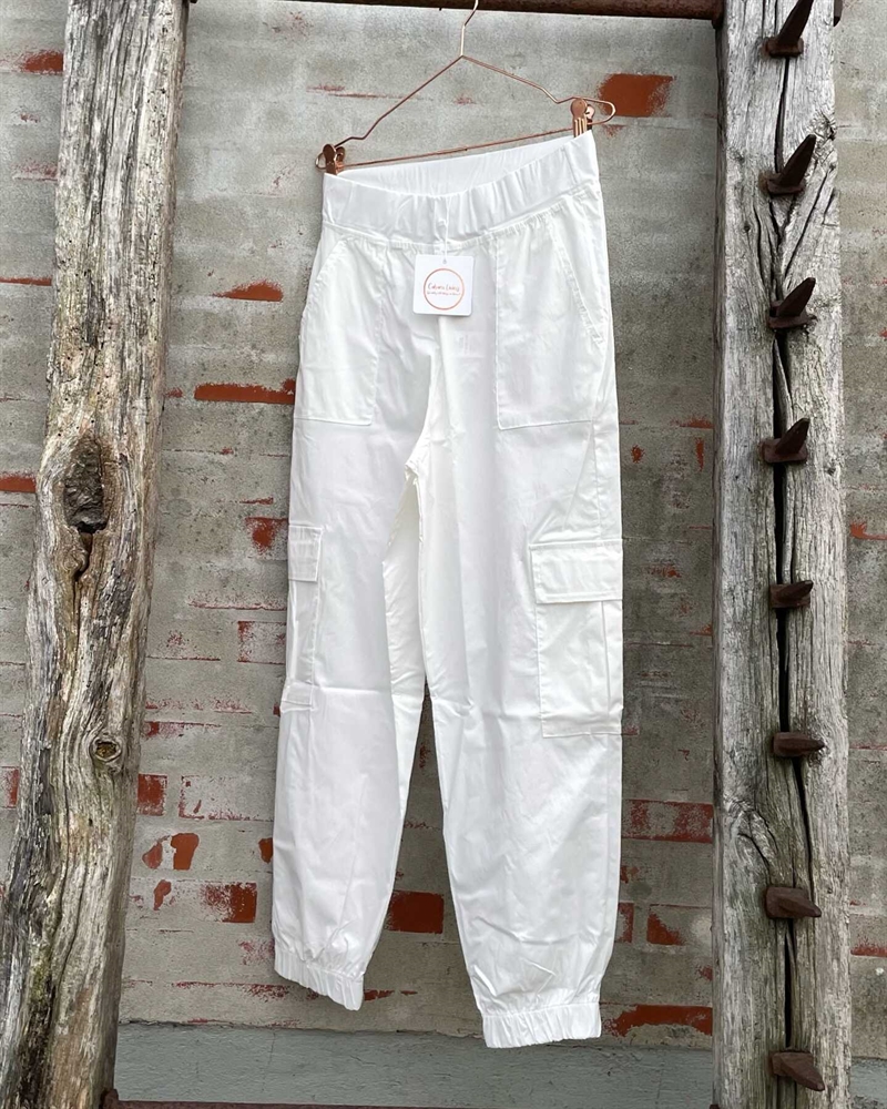 PRODUKTINFORMATION: Cabana Living Cargo 6965 Off-white - Cargo bukser Super skønne Cargobuks med lommer på lårene samt elastik i talje og i ben fra Cabana Living. Mangler din størrelse så skriv endelig til info@newseason.dk, så vil vi undersøge om den kan skaffes hjem. Produkt nummer: Cargo 6965 Off-white Materiale: 5% Rayon, 30% nylon, 5% Elastane Pasform: Til den store side Mål.: str M: Livvide 40 (ikke udstrakt elastik), Hofte 55 Farve: Off-white