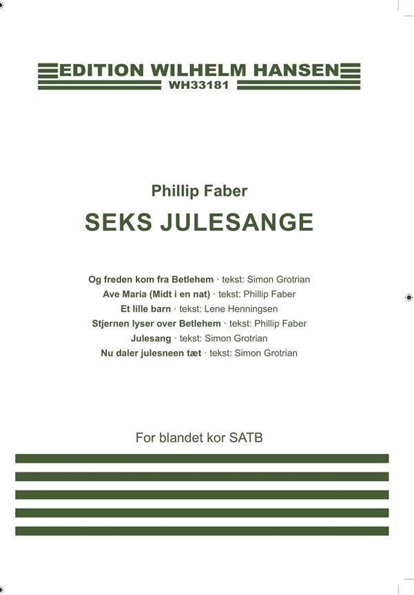 Seks Julesange by Phillip Faber . A collection of works for mixed voices edited by Jakob Faurholt. In Danish.