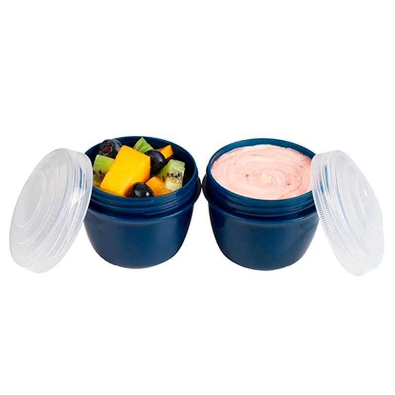 Sæt med 2 praktiske yoghurtbægre fra Sistema i genanvendt plast. Bægrene har transparent skruelåg, der holder helt tæt, så intet spildes - og trælse uheld i skoletasken undgås. Yoghurtbægrene er også fine til andre små snacks såsom skåret frugt, gnavegrønt, nødder - eller til babys hjemmelavede mos. Tåler mikrobølgeovn (uden låg), fryser og opvaskemaskine (på øverste hylde i opvaskeren) Fremstillet i levnedsmiddelgodkendt genanvendt plast uden BPA og ftalater Rummer: 1,5 dl. Se alle varer fra Sistema