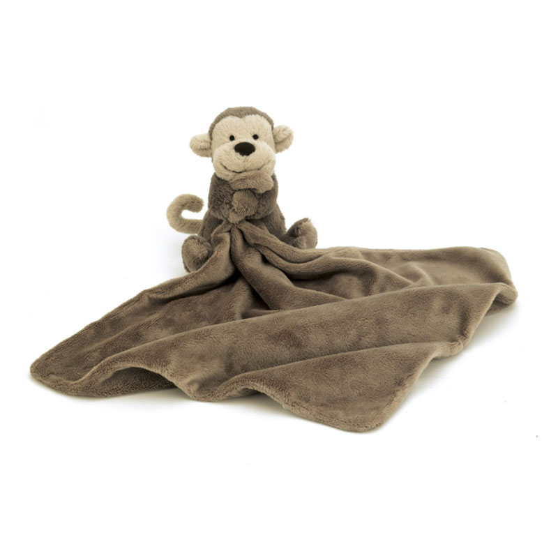 Dejlig blød nusseklud fra Jellycat med en lille sød og charmerende abe, der holder fast i det ene hjørne. En blød og velkendt nusseklud, som kan være en rar og tryg følgesvend for de allermindste. Bamserne fra Jellycat er designet i bamsernes hjemland England. De populære bamser er kendt for deres nuttede udtryk og bløde materialer, som gør at de hurtigt bliver barnets bedste ven. Nussekluden kan vaskes ved 40 grader - tåler ikke tørretumbler. Materiale: 100% polyester. Måler 34 x 34 cm. Fra 0 år.