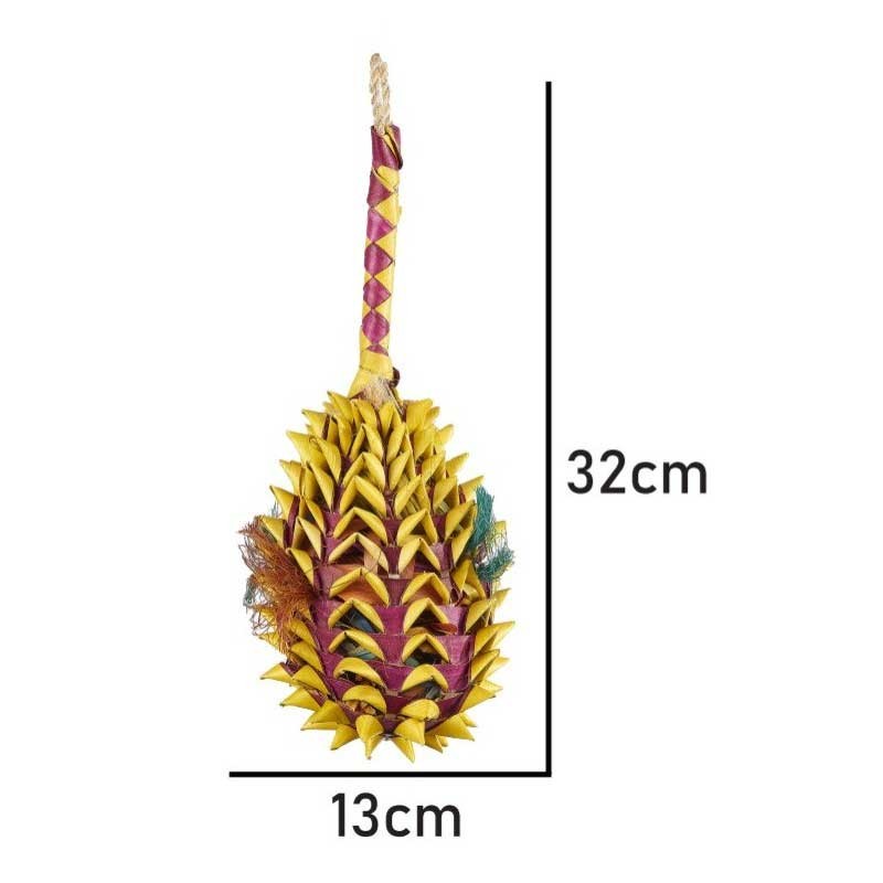 Fouragering til aktivering af din fugl Rund og ret kraftig flet pinata. Kan bruges af større parakitter og mellemstore papegøjer. Der kan gemmes godbidder i de flettede elementer hvilket vil få fuglen i gang med at bruge næbbet. Det bedste legetøj er stadig det der kan splittes ad, især hvis der gemmer sig godbid indeni. Dette legetøj er populært hos de fleste arter, for selv uden, at papegøjens ejer, gemmer godbidder i, venter der stadig fuglen en overraskelse indeni. Bare vent og se.