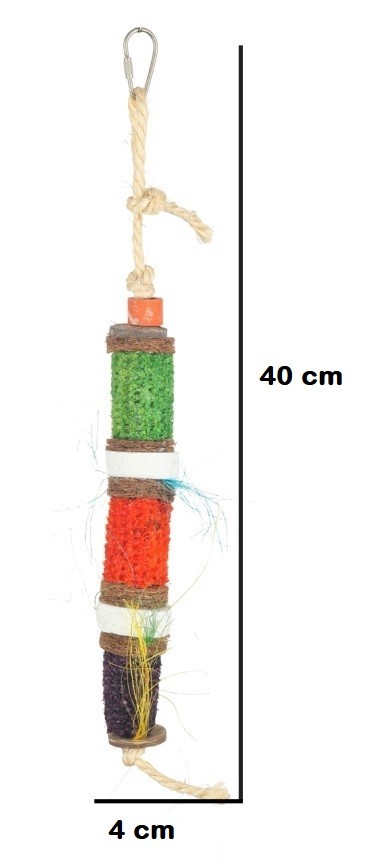 Fugle legetøj til den uerfarne papegøje Majs kebab er varmebehandlede porøse majsstammer i friske farver. Rigtig godt gnavemateriale til den papegøje, der enten er uerfaren med at bruge legetøj, eller til ungfuglen, der helt naturligt vil gumle på alting, for at styrke sine kind/tyggemuskler til fødevarebearbejdning med næbbet.