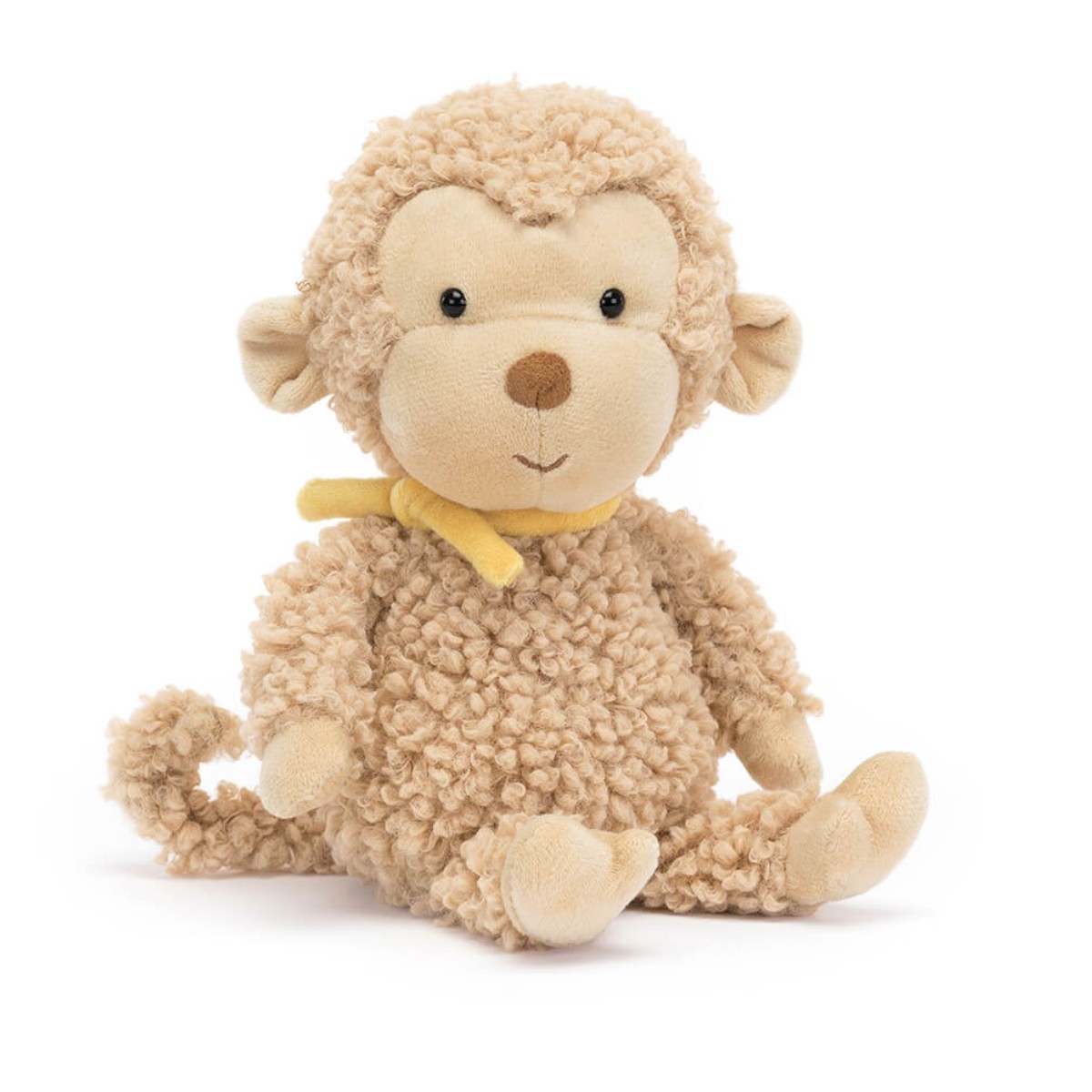Den sødeste lille og charmerende abe fra Jellycat med krøllet pels i lækker flødekaramel farve. Aben har en uimodståelig krøllet hale, små ører og fint gult bånd om halsen. Bamsen kan vaskes i hånden. Materiale: 100% polyester. Måler 23 cm. Fra 0 år. Se alle varer fra Jellycat