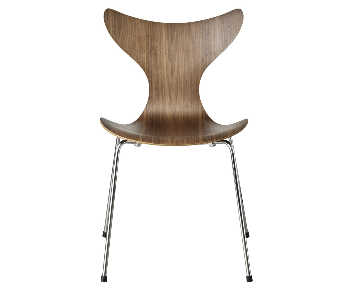 Design: Arne Jacobsen Beskrivelse: Oprindeligt blev Liljen™ designet til Danmarks Nationalbank. Som den første stol i serien blev model 3108 uden armlæn introduceret i 1968, mens udgaven med armlæn, model 3208, blev præsenteret på den danske møbelmesse i 1970. Stolen er lavet af lamineret formpresset finér og er resultatet af en yderst kompliceret formpresningsproces, der giver stolens dens karakteristiske kurver og optimale komfort. For at hylde Liljen™, den sidste stol Arne Jacobsen designede og som nu kan fejre sit 50-års jubilæum, relanceres stolen i sin originale version i valnødfinér. Materiale: Lakeret valnød Forkromet stål - Mærker > Fritz Hansen - Fritz Hansen