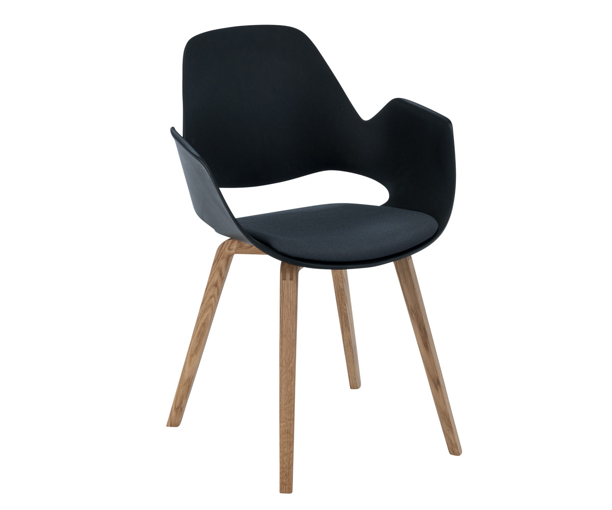 Design:Thomas PedersenBeskrivelse:FALK stolen er designet af Thomas Pedersen for danske HOUE. Stolen er designet med venlige, omfavnende kurver der inviterer dig ind og når du først sidder i den er du solgt. FALK er som den første stol i verden produceret af genanvendt husholdningsplast - alle dele: skallen, sædet og stellet er skabt med tanke på miljøet. For HOUE går bæredygtighed og ansvar hånd i hånd - men det vigtigste er at det kan dokumenteres - derfor har FALK også fået tildelt EU’s Ecolabel.Teknologien og produktionen bag FALK er udviklet i Danmark. Så når du ser på FALK, ser du dybest set på resultatet af ægteskabet mellem den danske arv inden for møbeldesign og banebrydende dansk innovation ved anvendelse af nytænkning og materialer i en stol.Som den første international anerkendelse modtog FALK German Design Award 2020 for fremragende produktdesign og er blandt finalisterne til Danish Design Award 2020.FALK passer med sine mange varianter både til hjemmet såvel som på kontoret.Materiale: 75% Genanvendt husholdningsplast 20% Glasfibre 5% Farvepigment Olieret eg Cura - Mærker > HOUE - HOUE