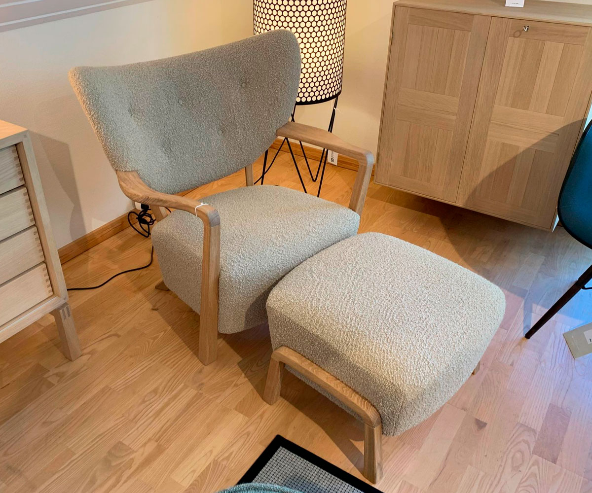 Design: &Tradition Beskrivelse: Wulff er en loungestol, hvis polstrede form hylderhåndlavede designs fra 1930'erne. Wulff oser af godt håndværk og enestående komfort med overdådig blød polstring, der dækker dets sæde og ryglæn - detaljer som generelt definerer dansk design fra 1930'erne. Beregnet som loungestol til stuen eller soveværelse, vil stolens arkitektoniske form tilføje et stilfuldt udtryk til ethvert interiør. Materiale: Olieret eg Karakorum 003 Outlet Denne vare har været anvendt i udstillingen og kan have brugssport heraf. Outletvarer sælger efter først til mølle princippet - vi tager derfor forbehold for at produktet kan være udsolgt. Kontakt os på 86 98 93 22, hvis du ønsker at købe. Prisen på outletvaren er en afhentningspris med afhentning i butikken i Hadsten. Ønsker du levering, er du velkommen til at kontakte os for pris. - Stole > Lænestole - &Tradition
