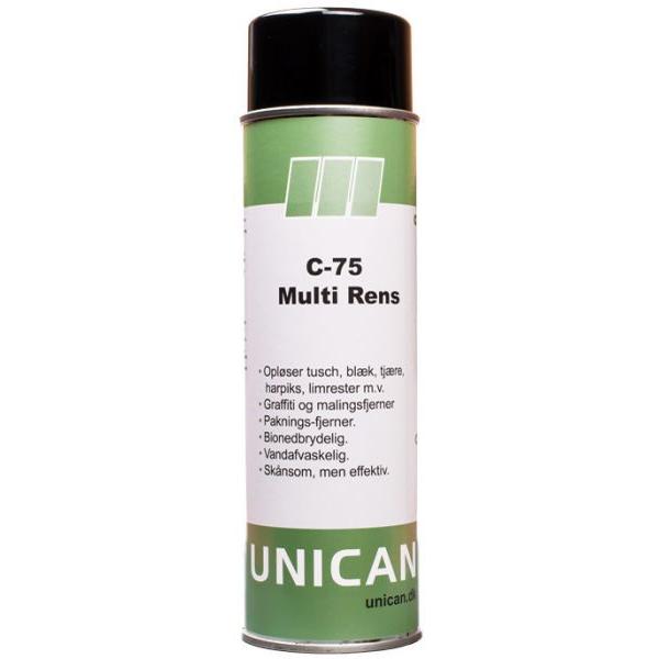 C-75 Multi Rens opløser de fleste malingstyper, lakker, tusch og blæk. Kan desuden anvendes til at løsne hærdet industrilim, f.eks. sekundlim, låsevæsker og en del 2-komponent lim.