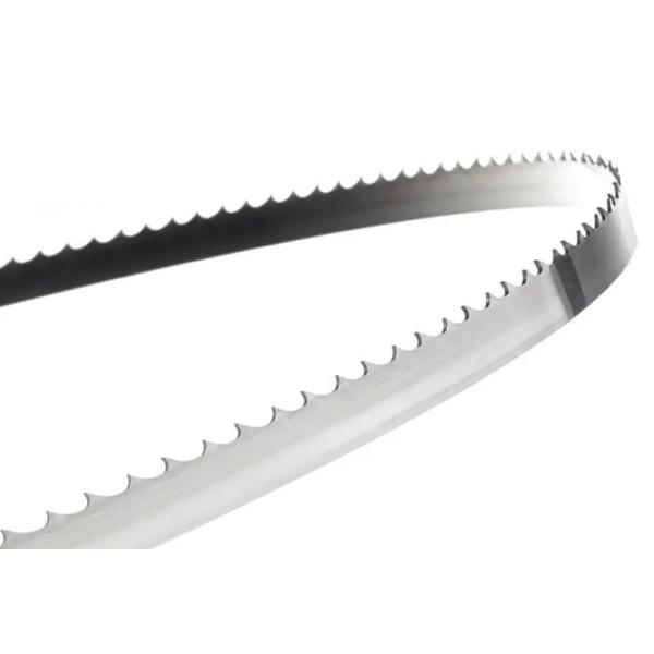 Kraftig båndsavklinge i hærdet kulstofstål med fremadrettet (hook) tandvinkel, der skærer aggressivt og effektivt gennem massivt træ. Hook-tanden har en positiv vinkel, som trækker klingen ind i materialet og sikrer hurtig fremføring med effektiv spånafgang og lav friktion.