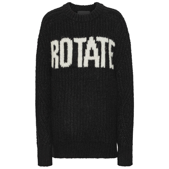 Den fine Knitted Logo Strik Sweater er en oversized sweater med chunky strikket tekstur og sænkede skuldre for et afslappet look. Det markante sorte ROTATE-logo pryder brystet og giver et moderne statement. Designet med en klassisk rund halsudskæring og ribbede kanter for en gennemført finish. Fremstillet i en blød og varm blanding af uld, alpaka og polyamid for komfort og holdbarhed.