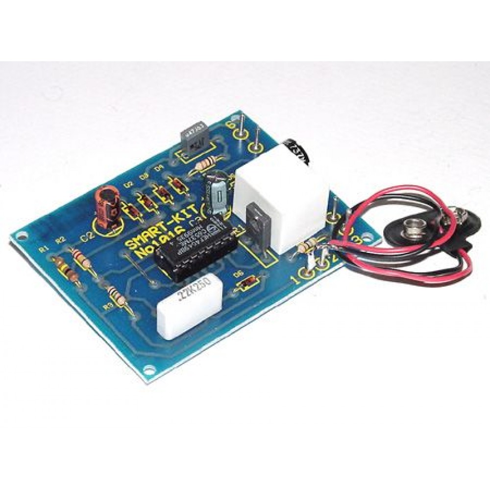 Højtalerbeskyttelse Denne højttalerbeskyttelse kan anvendes sammen med enhver Smart Kit- eller anden forstærker, der har et output imellem 1 og 100W.Højttalerne beskyttes imod spikes, og du beskyttes imod ubehagelige og dyre overraskelser. Kredsløbet eliminerer muligheden for at højttalerne brænder af på grund af overbelastning. Maximum current: 50mA. Quiescent current: 2mA. Maximum input power: 100 Watts. V 9-15 VDC P.S. 1061 PCB 59x74mm