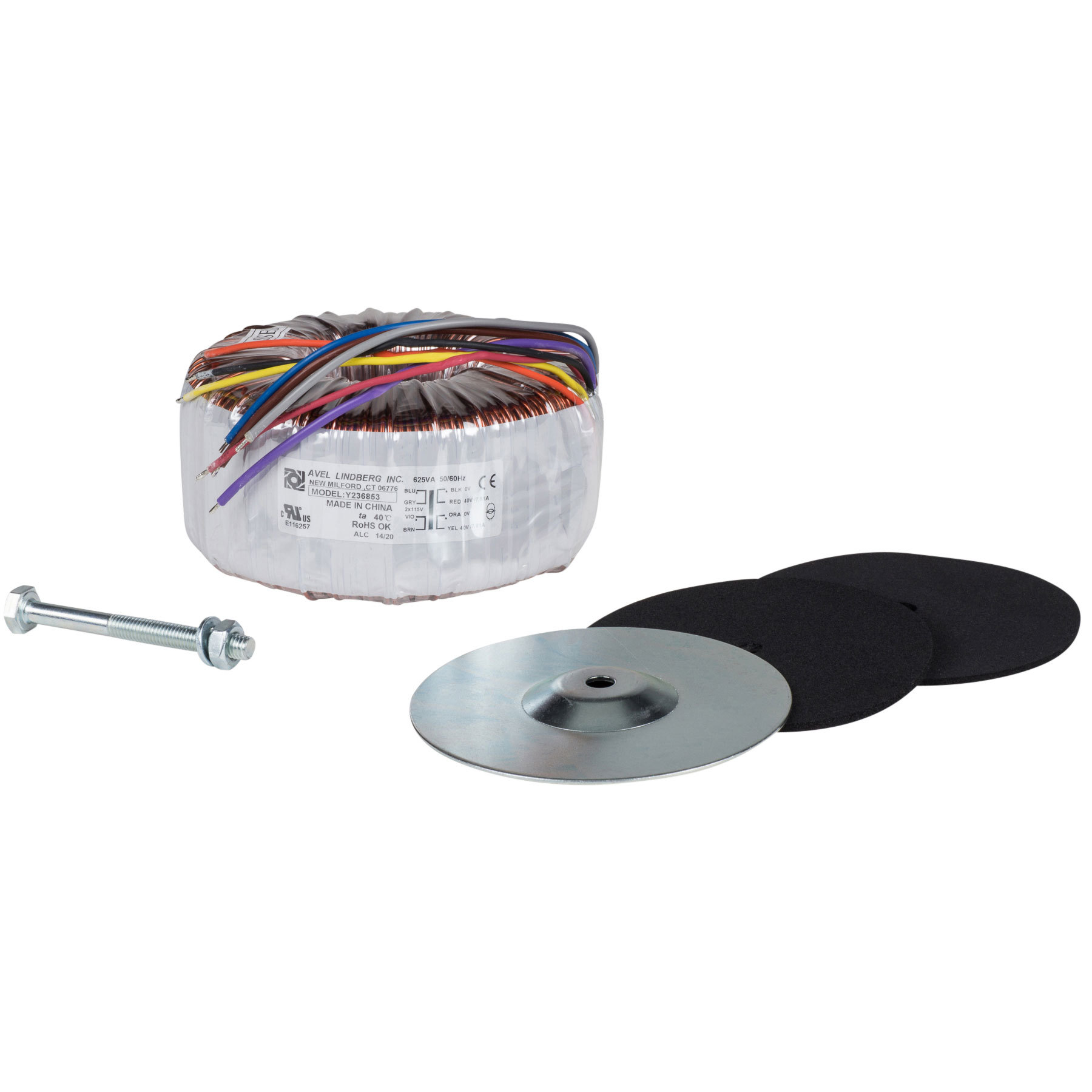 Gruppe: D8127TALEMA Toroidal Transformers Open Style Output: 625VA Input Voltage: 1x230VTechnical Specifications Power:625VAPrimary Voltage, ±10%:230VSecondary VoltageTRT625218:2x18VTRT625222:2x22VTRT625240:2x40VTRT625250:2x50VTRT625412:4x12VCopper Loss, Typ. (120°C):39,0WIron Loss, Typ.:3,1WNo-Load Current, Typ. (230V):28mADimensions:140x70mmWeight:4,6kgNoteGeneral product information see introduction text "D8111 to D8128" before product group D8111.LabellingApprovals 05Terms of DeliveryMinimum order quantity: 1 PKU = 1 pieceDelivery contents: transformer, 1 dished steel washer, 2 rubber pads, 1 central screw, 1 boltManufacturerhttp://www.talema.de