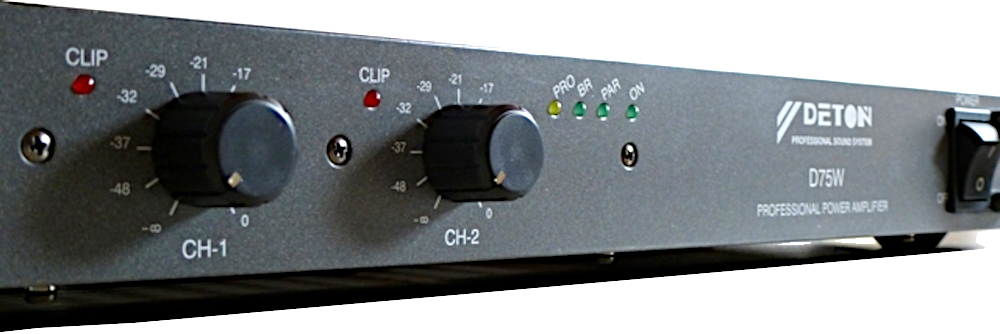 Deton PA-Amplifier D75W 2*75Watt Semi-Professionelle Endstufen von Deton überzeugen nicht nur durch ihr hervorragendes Preis-Leistungsverhältnis, sondern auch durch ihre professionelle Ausstattung. Die Endstufen sind mit allen üblichen Schutzschaltungen versehen und zeigt die momentanen Zustände auf dem Frontpanel mittels 4 Status LED'S je Kanal an. Der Betrieb in Brücken- und Parallel Schaltung ist möglich. Datentabelle Gewicht 12 Kg