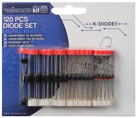 DiodesætIndhold: 120 stk.50x 1N414850x 1N400714x 1N54084x 6A62x 110B2 (W01G)