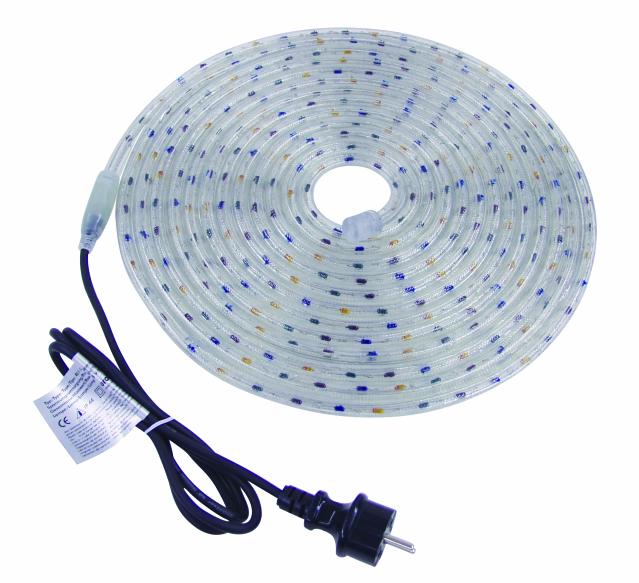 Komplet Duralight lysslange kit til 230Vac / 50Hz. Der medfølger tilslutningskabel og endestykke. IP44 godkendt til udendørs brug. Power supply:230 V AC, 50 HzPower consumption:140 WIP classification:IP44Protection class:Class IIPower connection:Fixed power supply cord with contour plug (M) CEE 7/17Cable construction:2 x 1,0 mm² H05RN-FCable length:Approx. 1,5 mColor generation:MulticolorControl:Plug and playLamps/meter:36 pc/pcsPower/meter:15,6 WLamps/tube:324 pc/pcsLamp distance:27 mmHousing color:ClearDimensions:Length: 9 mDiameter: Ø 1,3 cmWeight:1,32 kgLegal specificationsSpecial product:Not designed for household room illuminationIntended use:Show effect lighting