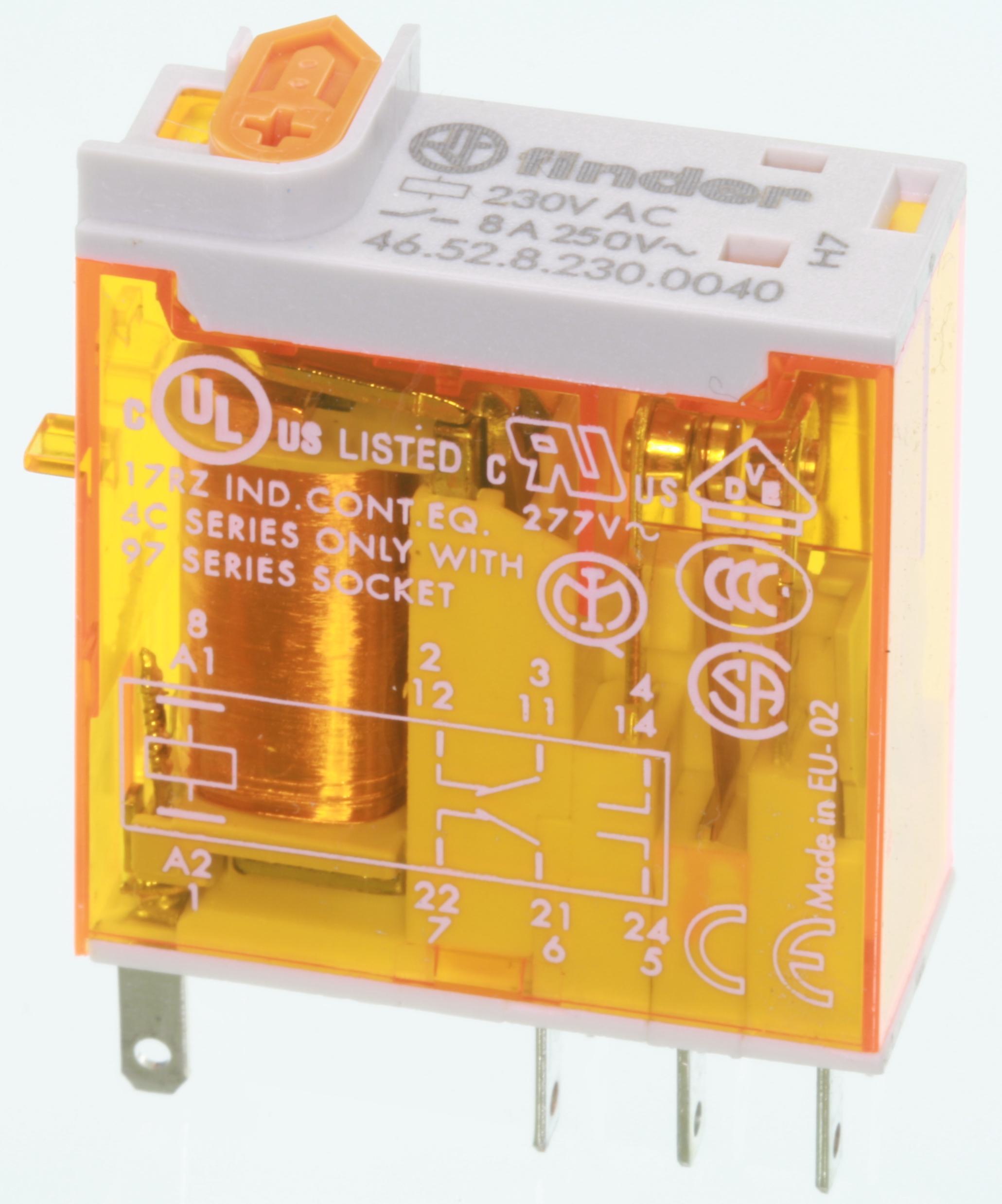 Finder Relæ 230VAC/0,5VA/28000R/2xSkifte/8A250VAC