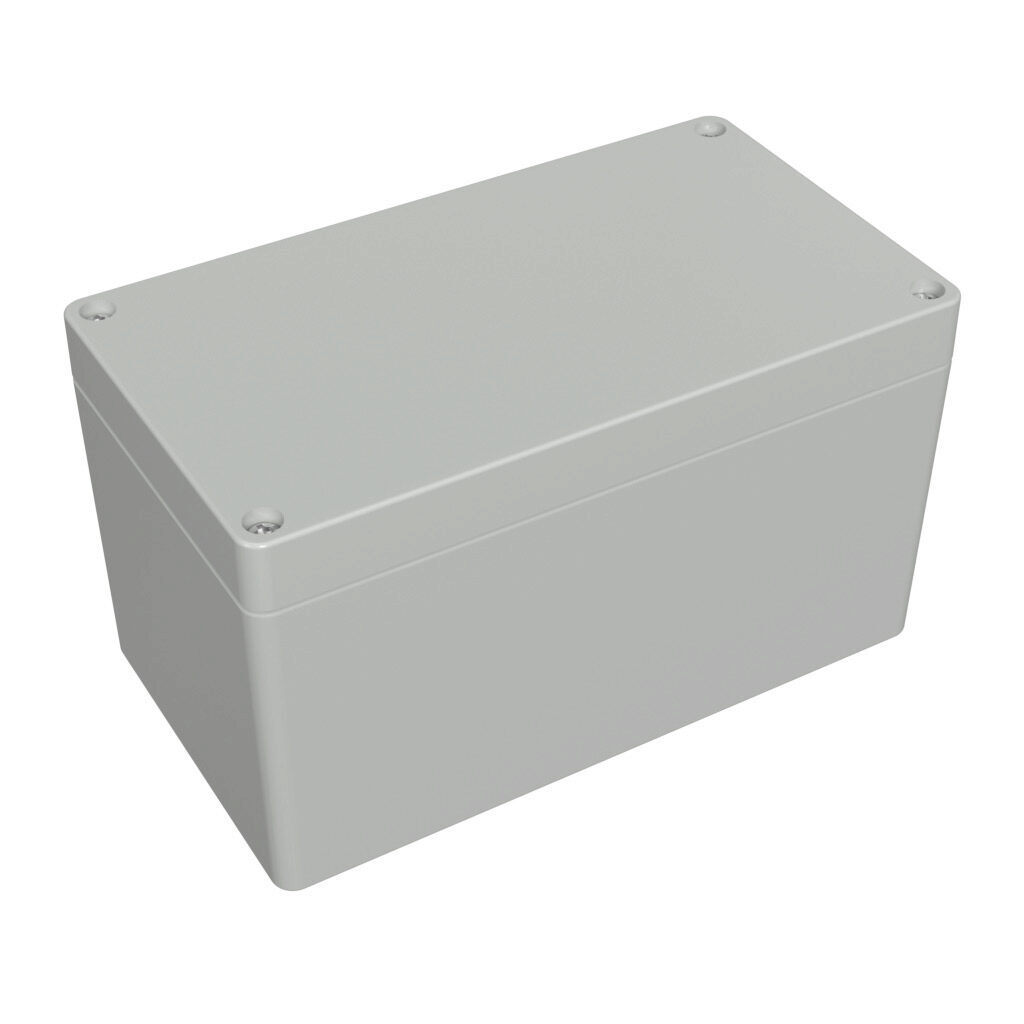Gruppe: G4535HAMMOND ABS Wall and Desktop Enclosures Series: 1554 With IP66 Protection Colour: Light GreyFeatures• Light grey ABS enclosure (similar to RAL 7035), UL94V HB• Dust proof, watertight enclosure (IP66 and NEMA 4, 4X, 12, 13)• Gasket is factory poured using high temperature (UL listed) silicone rubber gasket material• Lid is secured to base with M3x10 Phillips screws (supplied in delivery)• Machined screws in brass bushings at the four enclosure corners to provide a secure "lap-joint" construction of base and lid• Mounting cams for molded screws• Also suitable for wall mountingDimensions Part Nr.LWDEF [mm][mm][mm][mm][mm]HA1554BGY6565402515HA1554EGY9090604515HA1554CGY12065402515HA1554FGY12090604515HA1554KGY16090907515HA1554VGY240160907520D = Overall Depth, AssembledTerms of DeliveryMinimum order quantity: 1 PKU = 1 pieceManufacturerHammondhttp://www.hammondmfg.com