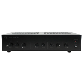 This quality 30 watt amplifier has 5 inputs. One balanced microphone input with voice operated priority over all other inputs. Two extra balanced microphone inputs and two auxiliary inputs for background music. Either 100 volt or low impedance loudspeakers may be used.• Inputs: - 3x Balanced Microphones- 2x Aux - 1x Tel.• Controls: - Mic 1, 2 and 3 volume control- Aux 1 and 2 volume control- Tone controls (Bass, Treble)- TEL input level control- Chime on/off switch • Frequency response: 30 - 17.000 Hz• Output power: 30W RMS • Total Harmonic Distortion: Less than 1% at 1kHz• Output impedance/voltage: 8 Ohms + 70/100V• Power supply: 230V AC - 24V DC• Dimensions (WxHxD): 430x88x300mmHQMaximum output power at 8Ohm45 WRated output power at 8Ohm30 W100V speaker outputYesFrequency range30 - 17.000 HzTotal harmonic distortion Microphone InputYesAUX inputYesTelephone inputYesLine outYesInput volume controlYesTone ControlBass + TrebleVoltage24DC + 230AC V