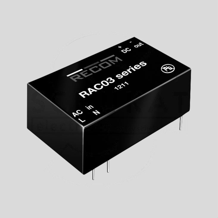 GROUP:L7833ManufacturerRECOM Type of converterAC/DC Power3W Supply voltage80...264V AC, 115...370V DC Output current600mA Efficiency72% Body dimensions37.8x23.9x16.4mm MountingPCB Protectionshort-circuit Insulation voltage3000V SeriesRAC03-C Operating temperature-25...85°C Weight30g Output voltage5V DC
