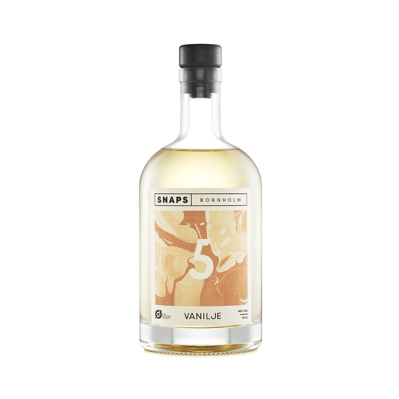 Aztekerne og Mayaerne blandede det i deres kakaodrik for mange hundrede år siden i Mellemamerika. I dag blander de vanilje i snaps på Bornholm. De har fået fingrene i nogle dejlige hele vaniljestænger, som bliver flækket på langs og sat ned i en skøn snaps. Efter nænsom filtrering, giver det en dejligt kompleks men drikkevenlig snaps. Drink den rent eller evt. i drinks som vist på billedet nedenfor.