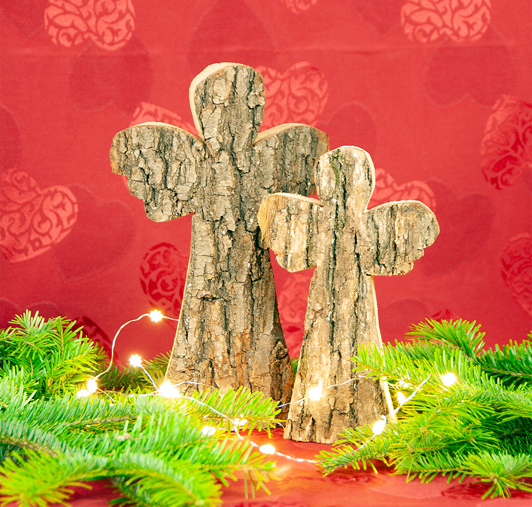 Skab et naturligt look her til jul med denne søde håndlavede engel af træ.Juleengle hører julen til, og du kan skabe smukke opstillinger på fade, gulvet og i vinduet, hvor du kan blande englens natur look med det mere traditionelle julepynt.En flot detalje er barken, som giver et nordisk udtryk både ude og inde.Englen er lavet af naturmateriale, derfor kan det forekomme, at noget af barken ikke er der, samt at størrelse og tykkelse kan variere.Lille 23 cm.Stor 30 cm.