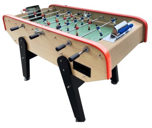 Super godt bordfodbold bord i rigtig høj kvalitet. Har forbedrede teleskop stænger, spillere, spilleplade m.v. Uden tvivl vores bedste bordfodbold spil til dato!Spillestængerne er teleskopstænger med formonterede roterende spillere.Bemærk vægten på hele ca. 80 kg, som gør at bordet står urokkeligt fast i kampens hede.Spillefladen har linoleum med skrånende hjørner, så bolden ikke kan komme udenfor spillernes rækkevidde, og spillet dermed går i stå.Bordet leveres med justerbare fødder så det kan stå lige på selv ujævnt underlag. (ØNSKER DU AT PRINTE SIDEN? SÅ GÅ NEDERST PÅ SIDEN OG TRYK PÅ PRINTER) Der medfølger 2 stk. kork fodbolde.