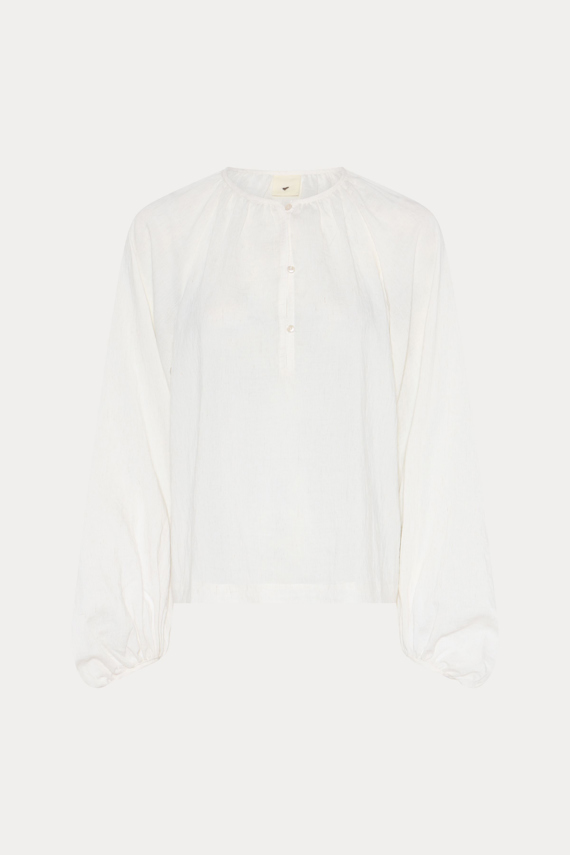 539HMMirla blouse is a light and airy blouse with raglan sleeves, a soft round neckline, and subtle gathers that create a natural drape. The matte, tightly woven fabric gives it a calm and elegant expression. Style it with sharp black trousers for a clean, sophisticated look, or pair it with light wide-leg trousers for a softer contrast. Add warm-toned jewellery to complement the earthy colour palette. - Light, tightly woven fabric - Voluminous raglan sleeves - Half button placket - Loose cuffs