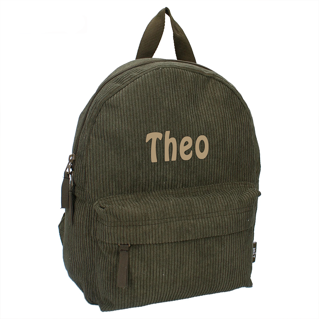 Kidzroom Rygsæk i blød ribstof - Army grøn - med/uden navn
