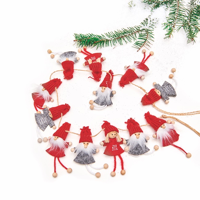 Guirlande 12 små nisser på en rebstige - 120 cm