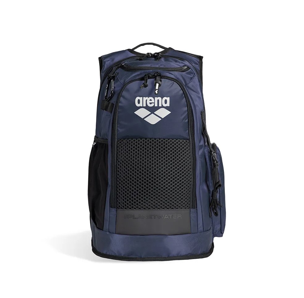 Arena All Set Backpack 45L (Navy) er en stilren og funktionel rygsæk designet til både svømmetræning, skole, sport og rejser. Med en kapacitet på 45 liter og to separate hovedrum giver tasken dig optimal organisering af træningstøj, sko, elektronik og tilbehør – uden rod. Rygsækken har udvendige lynlåslommer, en ekstra stor flaskeholder, loops til udstyr og en polstret lomme til sarte genstande. Den medfølgende karabinhage og mulighed for fastgørelse af måtte eller foam roller gør tasken ekstra alsidig. Det komfortable Aquabreathe-rygsystem, justerbare stropper og åndbar rygflade sikrer høj bærekomfort – også på lange ture. Fremstillet i vandafvisende materiale med en forstærket bund og trolley-sleeve, der gør tasken perfekt som håndbagage. En sportstaske og rejserygsæk i én, ideel for svømmere og aktive på farten.
