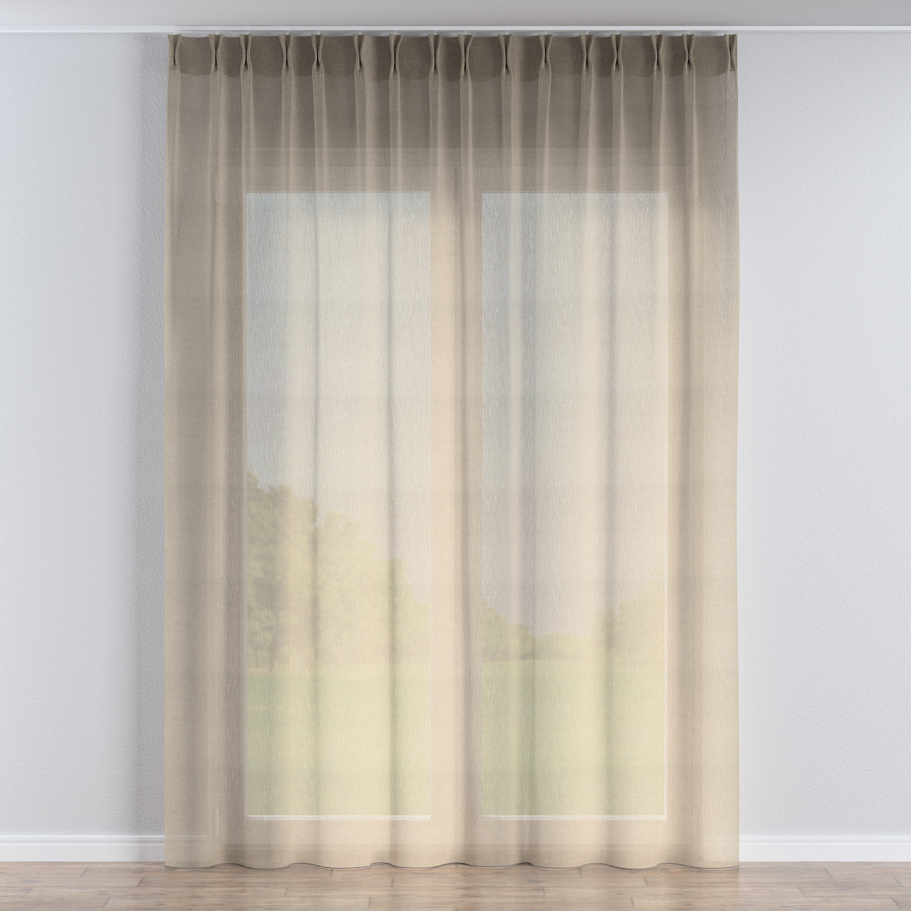 Gardin med dobbel fast læg ✔ Skræddersyet - klar til montering hos dig✔ Direkte fra systuen - uden fordyrende mellemled✔ Perfekt fald - med indsyet tyngdebånd og ekstra tyngde i hjørner ved søm✔ Kvalitetstekstiler – hovedsaglig fra Portugal✔ EU produceret - vores egen systue Gardin med dobbel fast læg er beregnet til montering i en gardinskinne og skaber jævne, ca. 7 cm dybe bølger, hvilket giver et stilrent og elegant udtryk. Velegnet til store vinduespartier, hvor gardinet nemt skal kunne trækkes til og fra. Bølger og montering Gardinet er sammensyet med læg og har kroge indsat med intervaller på ca.13 cm, der gør at folderne aldrig hives flade. Opmåling ved 2 stk pr. vindue Bredde: Mål fra midten af gardinskinnen til skinnens yderkant. Rund altid op til nærmeste cm, der kan deles med 10 cm. Højde: Mål fra 1 cm under bunden af skinnen og ned. Husk, at gardinskinnen altid vil være synlig – det er en forudsætning for, at systemet fungerer korrekt. Tolerancer Størrelsen vil altid have en tolerance på +/- 5 cm i bredden og +/- 2 cm i længden. Stoffets bredde og sammensyning Ved bestilling af f.eks. bredde 130 cm vil stoffet være bredere og vil dække 130cm når det er trukket for - modsat andre gardintyper, der først skal rynkes og dermed formindskes dækkefladen fra feks 130 cm til 65 cm. Vores voile wavegardiner vil aldrig blive syet sammen af flere stofbaner, da vores voiletekstiler har stofbredder fra 290cm og bruges horisontalt. Hvis du skal bruge gardiner længere end 285cm, så kontakt os. Afslutning og tyngdebånd Gardiner afsluttes forneden med indsyede tyngdebånd Ved lange gardiner kan du med fordel bruge denne gardin-fører stang