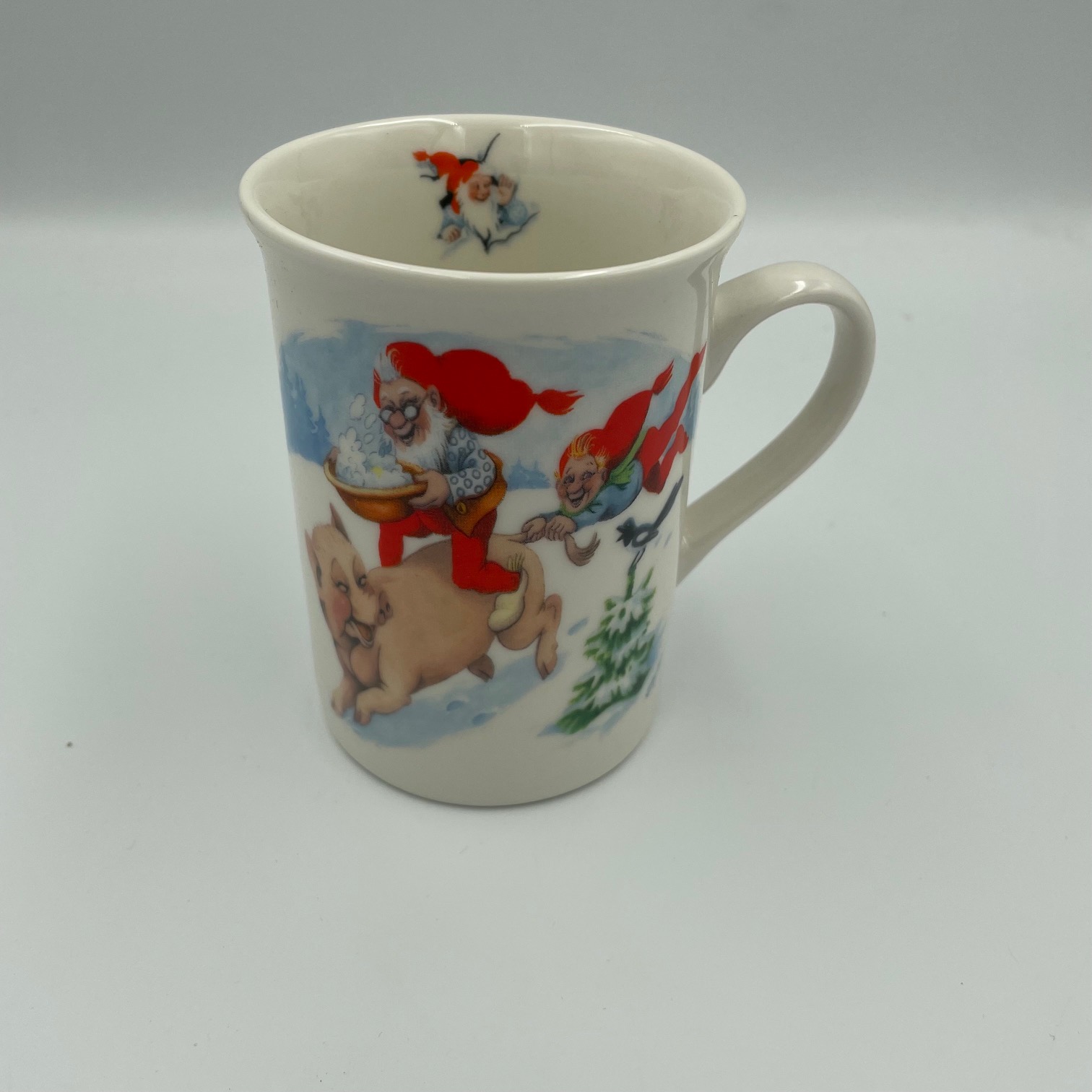 Julekrus med nisser på gris fra Vilhelm Hansen. Pynt juleborde med dette sjove krus. Det måler: H. 10 cm, B. 8 cm Få navn på, helt gratis. Se hele udvalget i julekrus