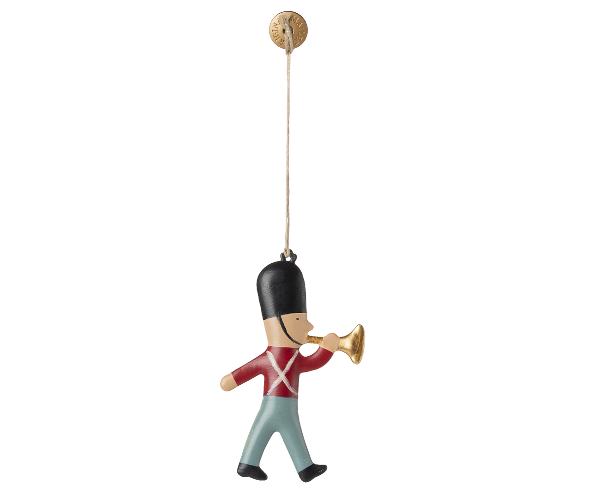 Smukt metalophæng – en lille garderfigur, ca. 9 cm høj. Håndmalet med fine detaljer på metal. Perfekt til juletræet, i vinduet eller som en særlig dekoration i din samlekollektion af Maileg ornamenter.