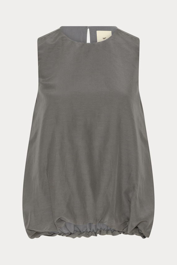 Tanis toppen er en ærmeløs og sofistikeret top med en ballon-effekt skabt af dobbeltlag, perfekt til et moderne og stilrent look.