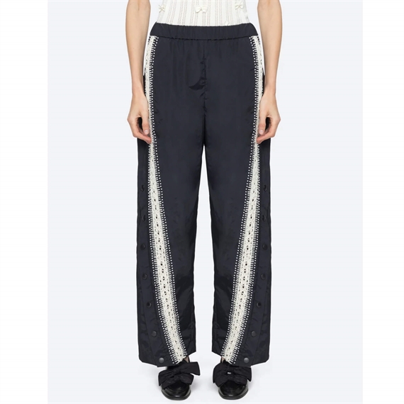 Alberta Pearl Track Pants kombinerer et sporty udtryk med feminine detaljer. De fine håndhæklede kanter og diskrete perleudsmykninger giver bukserne et feminint look, mens den elastiske talje sikrer en behagelig og fleksibel pasform.