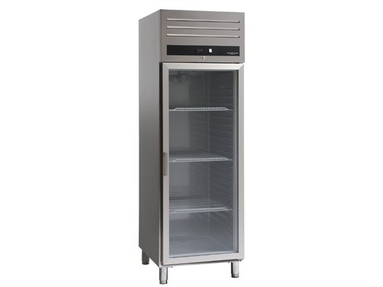 Udvendige mål (HBD): 2040 x 653 x 842 mm Vægt: 105 Kg.. Plads: 543 Liter Lågen er vendbar Indbygget LED lys: 1 stk. Rustfri stål indvendigt & udvendigt Justerbare ben i rustfri stål - 125-200 mm Glas dør (Displaykøleskab) Antal tråd hylder: 3 Stk. (maks. 40 kg.) Justerbar hylder Digitalt display Volt: 220-240V Energi mærke: B Årligt energiforbrug, kWh/a: 876 | Scandomestic Prof. Displaykøleskab (543 Ltr.) - GUR700GDX | Reservedele og tilbehør > Udstyr til salgsvogne > Hvidevarer
