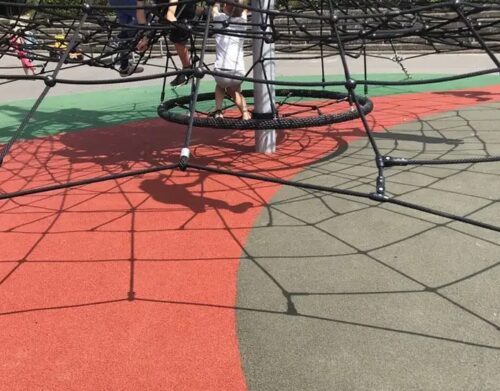 Det nyeste inden for faldunderlag ved legepladser. Vores gummiunderlag indeholder en stor mængde genbrugsgummi, så det er samtidig en god løsning, når vi også vil tage hensyn tilmiljøet. Prisen er pr. m2. Certifikater – herunder TUV, sliktest, kørestol, brand og dræn - og overholder de højeste krav inden for sikkerhed og faldhøjder i henhold til DS/EN1176 og DS/EN1177.(Ønsker du at printe sådan? Så gå nederest på siden og tryk på PRINTER)Faldunderlag i gummi gør legen endnu sjovere og mere spændende for børnene. I mange tilfælde kan gummiunderlaget udgøre selve legepladsen og det er kun fantasien, der sætter grænser for udformning, grafik og farver. Ved at vælge gummiunderlag får I en løsning, der slider mindre på legeredskaber og det omkringliggende område både udendørs og indendørs.Vores gummiunderlag indeholder en stor mængde af genbrugsgummi – helt op til 91%, så det er samtidig en god løsning, hvis I vil tage hensyn til miljøet.Vedligeholdelsesfrit underlag – selve gummiunderlaget kræver ingen vedligeholdelse.Minimalt slid – medfører mindre slid på legeredskaberne og det omkringliggende miljø.Den billigste løsning – efter allerede 5 år er løsningen billigere end bl.a. barkflis, sand og faldgrus.Hver m2 pålægges kr 80,- for fragt og montering, som automatisk tillægges ved "kassen".DS/EN1176 og DS/EN1177 50* 54321. Ran-Play Varenummer 7950600.