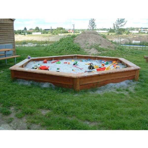 Sekskantet sandkasse. Udført i kalmartræ.Diameter 400 cm, sider 200 cm. Oliebehandlet.Kan udvides med 2 ekstra sider, mod et tillæg. Har det interesse ? Tal med Kaj på 4028 2231.*)Dette produkt sælges kun opstillet og monteret af vores håndværkere mod betaling af gebyr kr 4.800,-!!Gebyr samt fragt tillægges automatisk ved kassen.(ØNSKER DU AT PRINTE SIDEN? SÅ GÅ NEDERST PÅ SIDEN OG TRYK PÅ PRINTER)Ran-Play varenr: 5907042