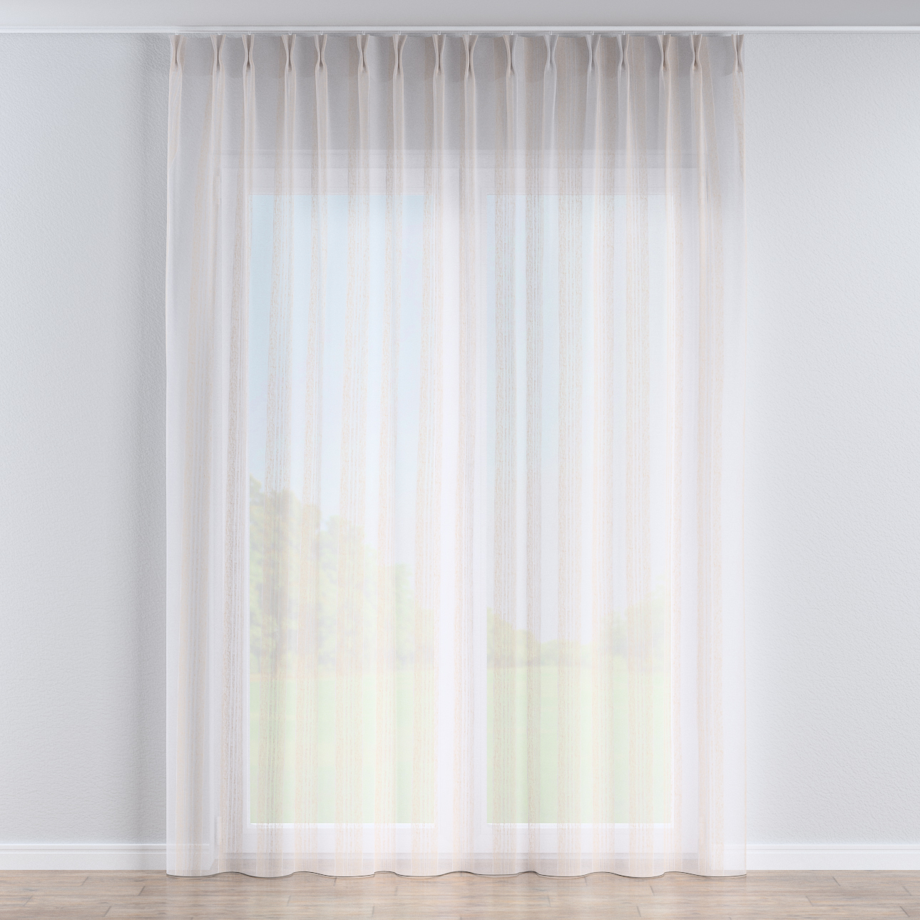 Gardin med dobbel fast læg ✔ Skræddersyet - klar til montering hos dig✔ Direkte fra systuen - uden fordyrende mellemled✔ Perfekt fald - med indsyet tyngdebånd og ekstra tyngde i hjørner ved søm✔ Kvalitetstekstiler – hovedsaglig fra Portugal✔ EU produceret - vores egen systue Gardin med dobbel fast læg er beregnet til montering i en gardinskinne og skaber jævne, ca. 7 cm dybe bølger, hvilket giver et stilrent og elegant udtryk. Velegnet til store vinduespartier, hvor gardinet nemt skal kunne trækkes til og fra. Bølger og montering Gardinet er sammensyet med læg og har kroge indsat med intervaller på ca.13 cm, der gør at folderne aldrig hives flade. Opmåling ved 2 stk pr. vindue Bredde: Mål fra midten af gardinskinnen til skinnens yderkant. Rund altid op til nærmeste cm, der kan deles med 10 cm. Højde: Mål fra 1 cm under bunden af skinnen og ned. Husk, at gardinskinnen altid vil være synlig – det er en forudsætning for, at systemet fungerer korrekt. Tolerancer Størrelsen vil altid have en tolerance på +/- 5 cm i bredden og +/- 2 cm i længden. Stoffets bredde og sammensyning Ved bestilling af f.eks. bredde 130 cm vil stoffet være bredere og vil dække 130cm når det er trukket for - modsat andre gardintyper, der først skal rynkes og dermed formindskes dækkefladen fra feks 130 cm til 65 cm. Vores voile wavegardiner vil aldrig blive syet sammen af flere stofbaner, da vores voiletekstiler har stofbredder fra 290cm og bruges horisontalt. Hvis du skal bruge gardiner længere end 285cm, så kontakt os. Afslutning og tyngdebånd Gardiner afsluttes forneden med indsyede tyngdebånd Ved lange gardiner kan du med fordel bruge denne gardin-fører stang