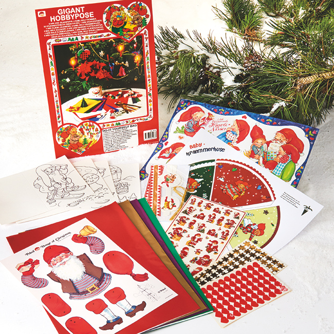 “Gigant Hobby Jule Luxus” er den perfekte kreative julehobbypakke til hele familien. Indeholder: - 5 ark glanspapir i flotte farver - 2 ark karton i rød og hvid - 32 stjernestrimler i klassisk rød og hvid - 2 ark udstansede flettehjerter - 3 saml-selv kræmmerhuse - 4 saml-selv trommer - 1 ark kravlenisser - 1 ark klæbejulemænd - 1 ark guld klæbe-stjerner - 1 ark røde klæbehjerter - 4 mal-selv julekort - 1 saml-selv sprællemand - Idéer og vejledning til at komme godt i gang Alt hvad du behøver for at lave frisk og festlig julepynt. Ideel gaveidé eller hyggestund i december.