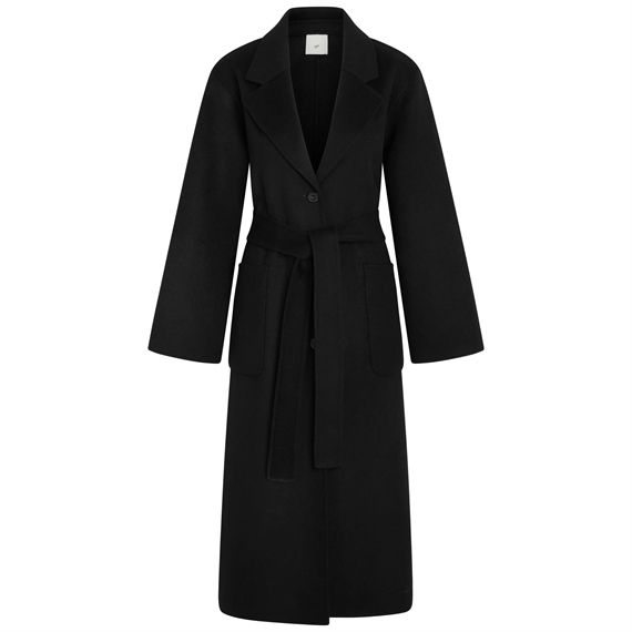 - Lang frakke med bælte i taljen